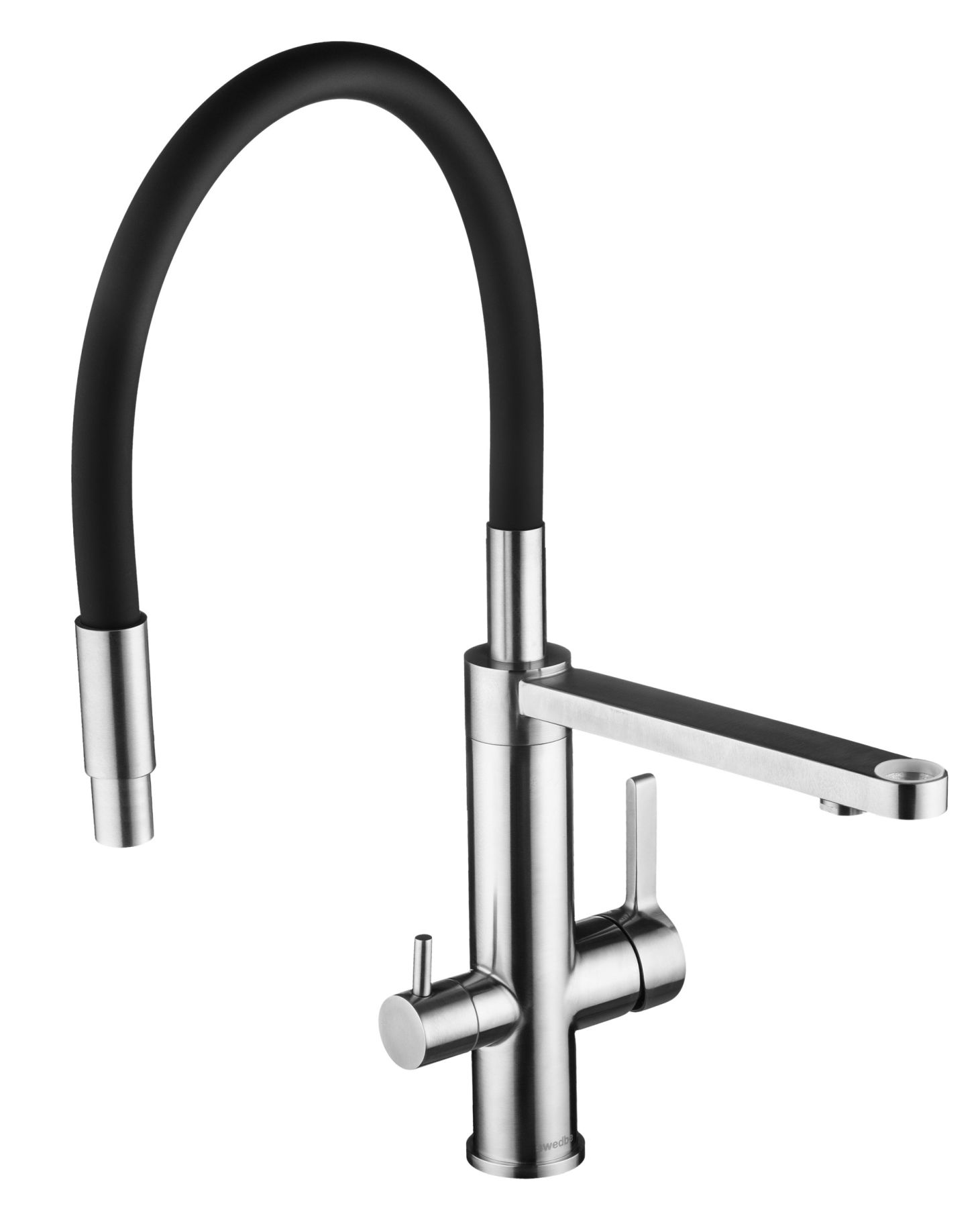 Смеситель для кухни Swedbe Selene Plus 8440 с каналом для подключения фильтра и гибким изливом нержавеющая сталь/чёрный купить