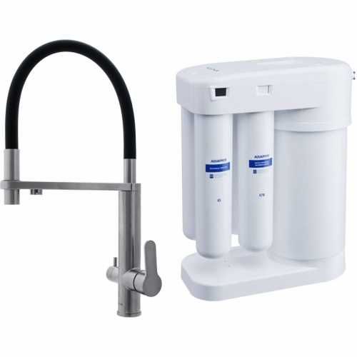 Смеситель для кухни Swedbe Selene Plus 8440M в комплекте с фильтром Аквафор Морион нержавеющая сталь/чёрный