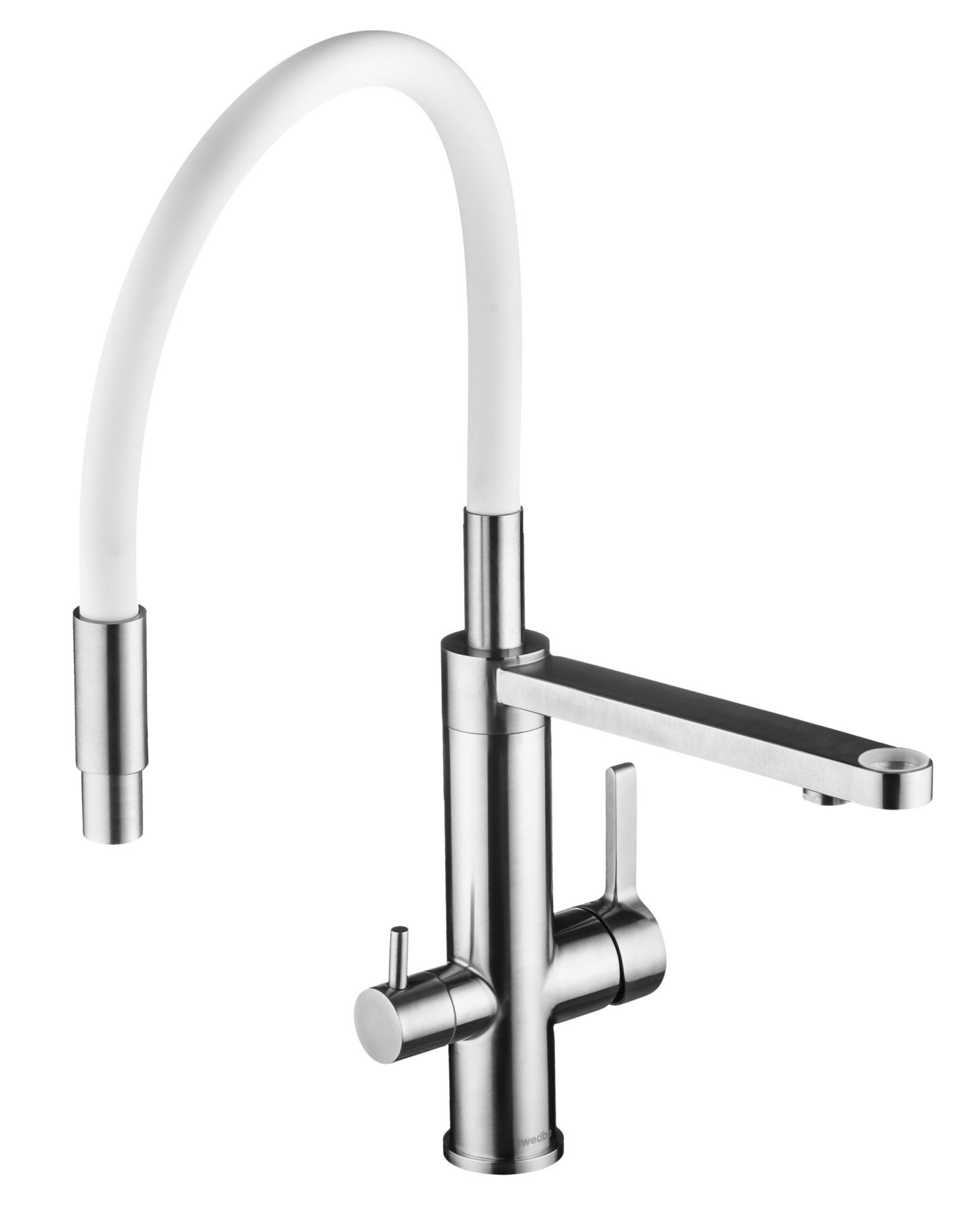 Смеситель для кухни Swedbe Selene Plus 8441 с каналом для подключения фильтра и гибким изливом нержавеющая сталь/белый купить