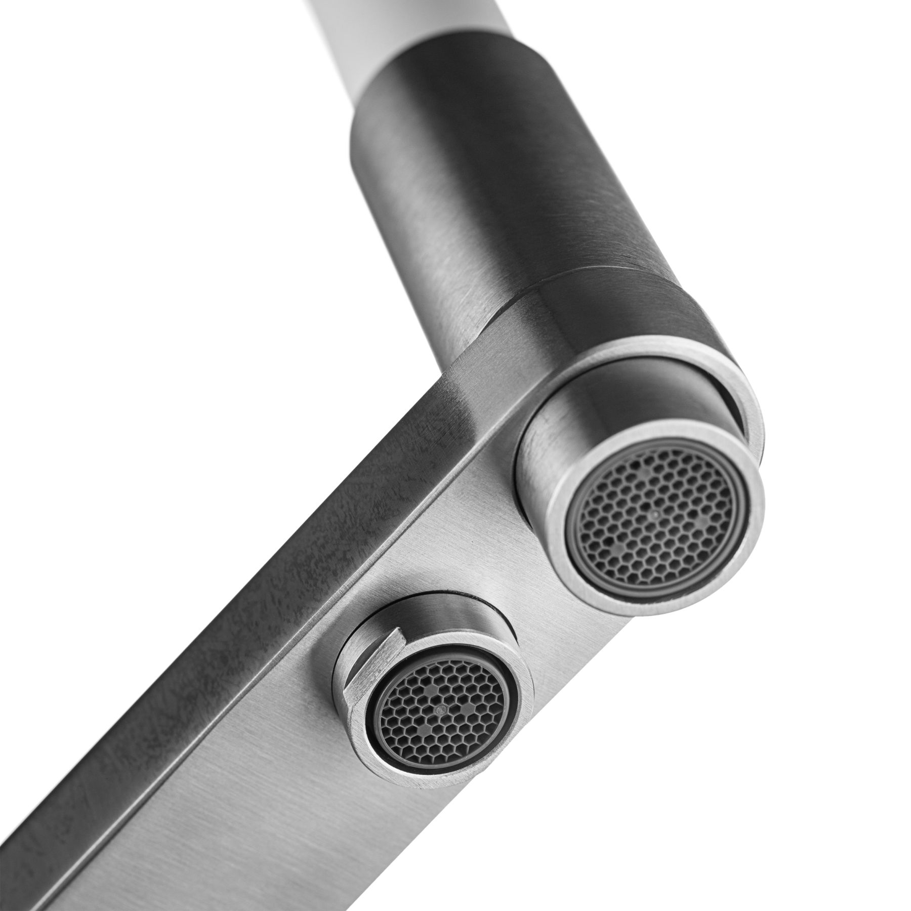 Кухонный смеситель для фильтра с гибким изливом 2 в 1Излив с поворотом 180 градусов.Изготовлен полностью из пищевой нержавеющей стали (SUS 304).Изолированный отдельный канал для фильтрованной воды.Керамический картридж Sedal.Аэратор Neoperl.Гибкая подводка SoftPEX.Цвет излива: белый