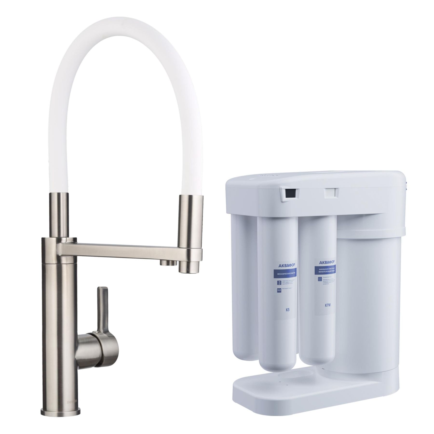 Смеситель для кухни Swedbe Selene Plus 8641M в комплекте с фильтром Аквафор Морион нержавеющая сталь/белый