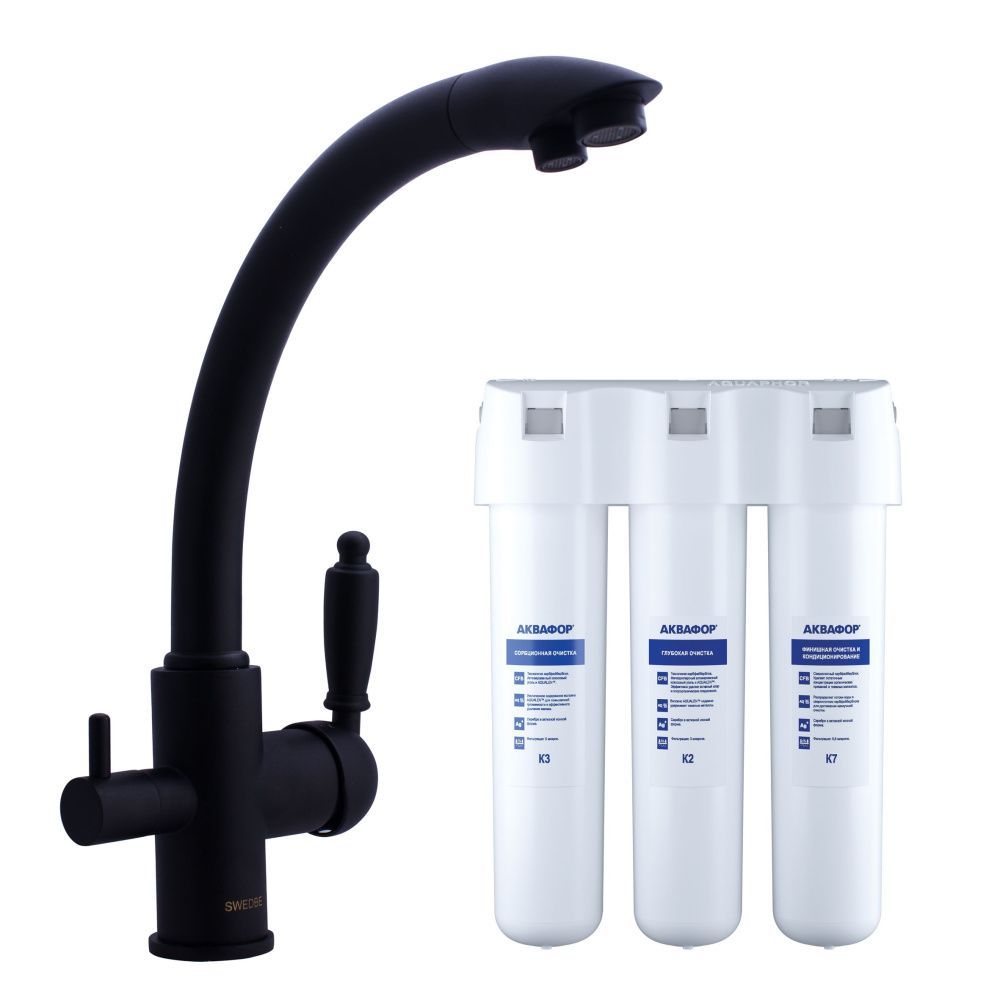 Смеситель для кухни Swedbe Selene Plus K8045K в комплекте с фильтром Аквафор Кристалл чёрный матовый купить