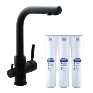 Смеситель для кухни Swedbe Selene Plus К8149К в комплекте с фильтром Аквафор Кристалл чёрный матовый