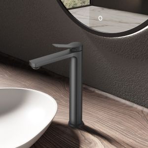 Смеситель для накладной раковины Vincea Arco VBF-4AR02GM однорычажный, вороненая сталь купить