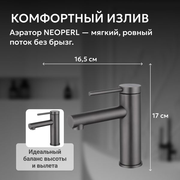 Смеситель для раковины ABBER Emotion AF8810NG оружейная сталь купить