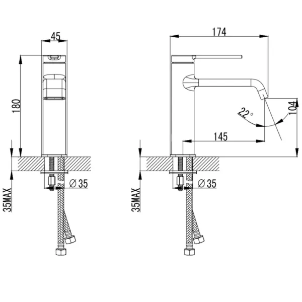 - Высота смесителя:18