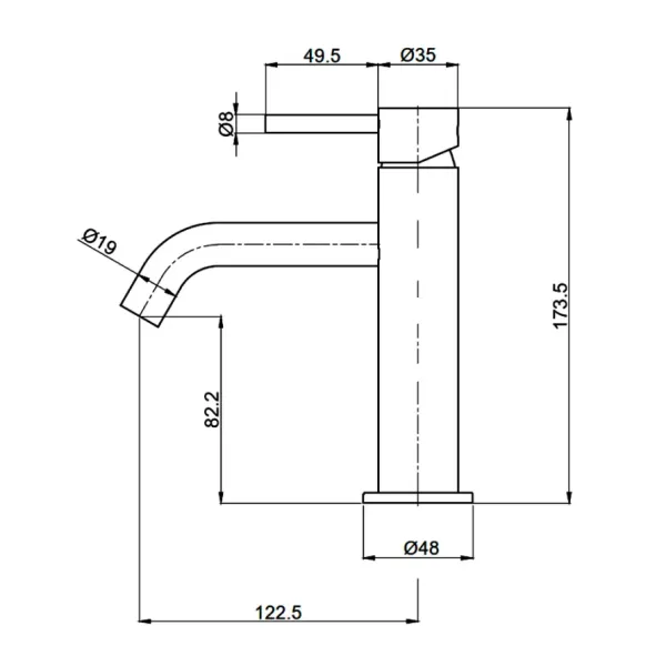 - Длина излива, см:12.5