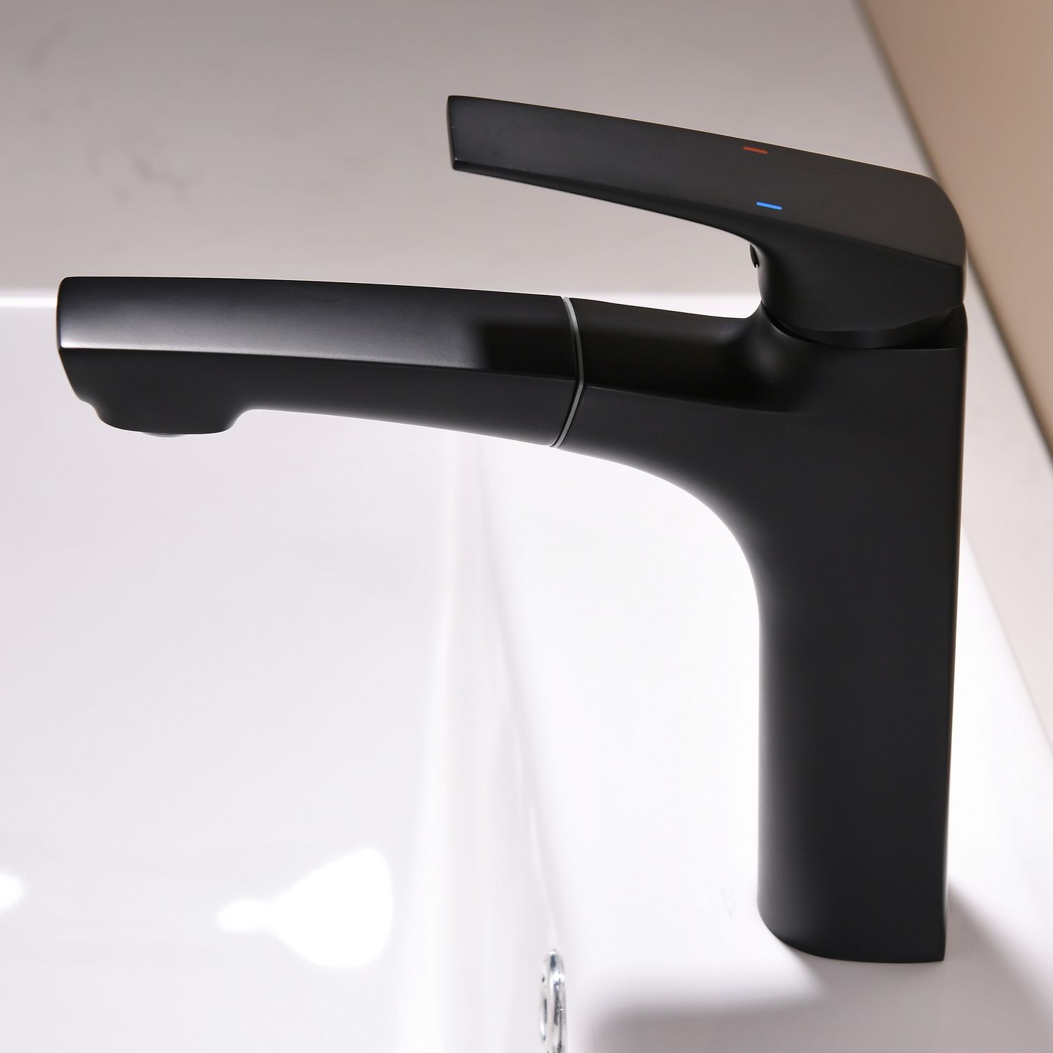 Смеситель для раковины Black&White Universe 7901B с выдвижным изливом чёрный матовый