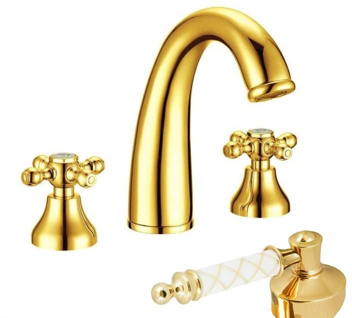 Смеситель для раковины Boheme на 3 отверстия TRADIZIONALE ORO с ручками Murano белое_Комплект золото