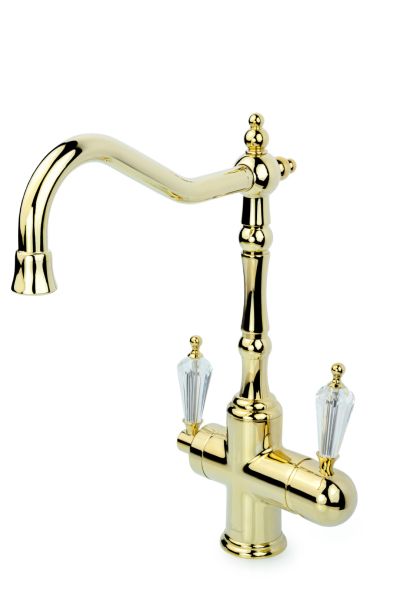 Смеситель для раковины Boheme с краном TRADIZIONALE ORO с кристаллом SW_Комплект золото