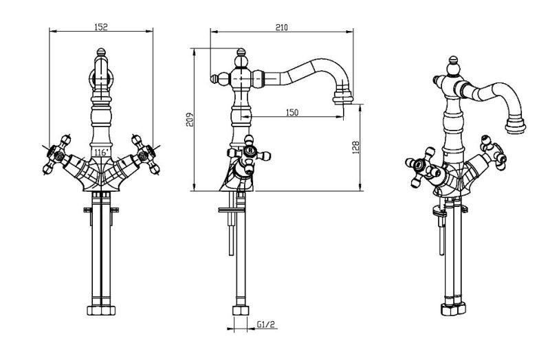 Смеситель для раковины Boheme TRADIZIONALE CHROMO SW_Комплект хром