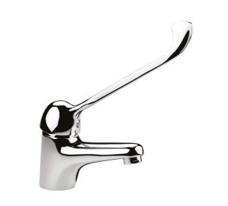 Creavit Home HM1105 Локтевой смеситель для раковины (хром). Без сливного клапана. Долговечный керамический картридж 40 мм. Для удобства управления длинная и эргономичная ручка. Скорость потока 8 л/мин. Рабочее давление 3-4 бар.