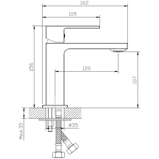 • Высота смесителя: