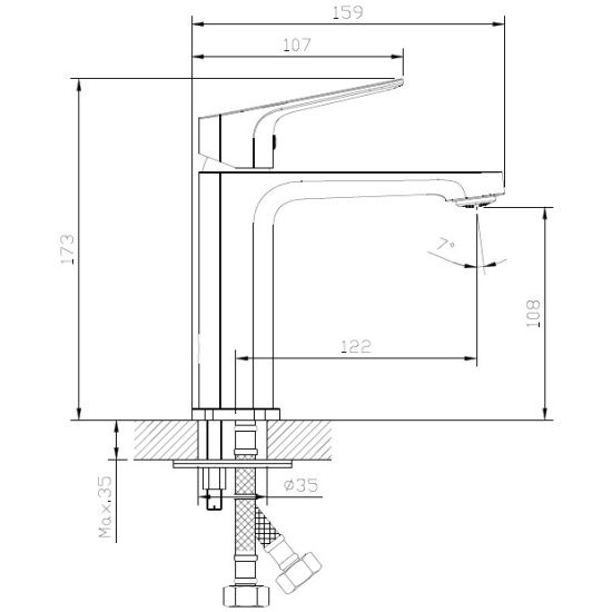 • Высота смесителя: