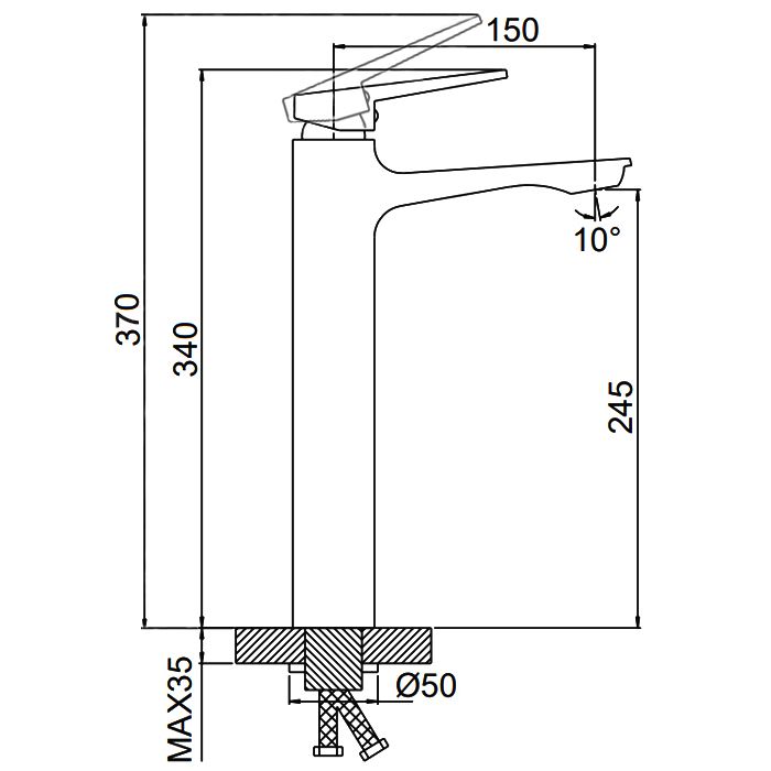 • Высота смесителя:
