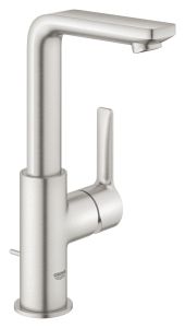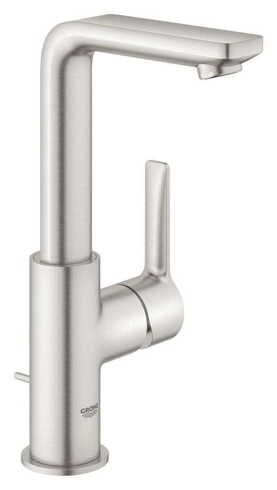 Смеситель для раковины GROHE Lineare L-Size с донным клапаном — это элегантное и функциональное решение для современных ванных комнат. Чёткие геометрические линии и увеличенная высота излива делают модель особенно удобной для ежедневного использования и идеально подходящей для накладных и глубоких раковин.