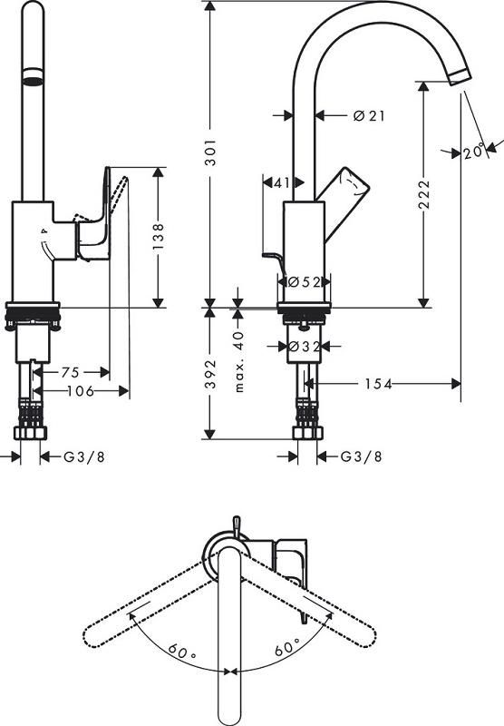 Смеситель для раковины Hansgrohe Rebris E 72576670 черный купить