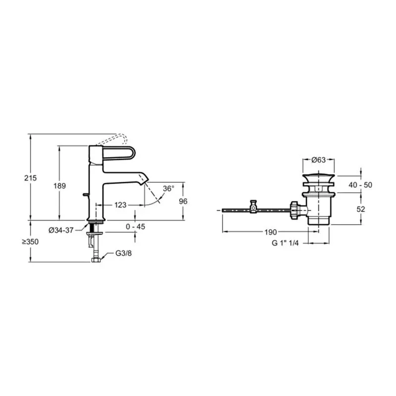 - Донный клапан в той же отделке, что и входящий в комплект смеситель