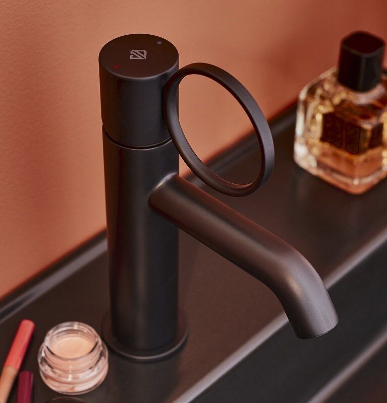 КРАН, СОЗДАННЫЙ КАК ЮВЕЛИРНОЕ ИЗДЕЛИЕ: эффектная ручка размера XXL. Идеально сочетающиеся друг с другом смесители и мебель. Модный угловой излив, который обеспечивает хорошую проекцию воды.