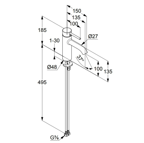однорычажный смеситель на умывальник 100 DN 15