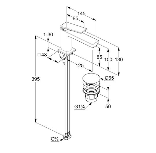 - В комплекте со смесителем поставляется донный клапан (входит в стоимость)