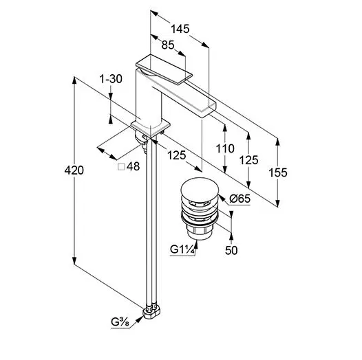 - Высота излива: 11 см