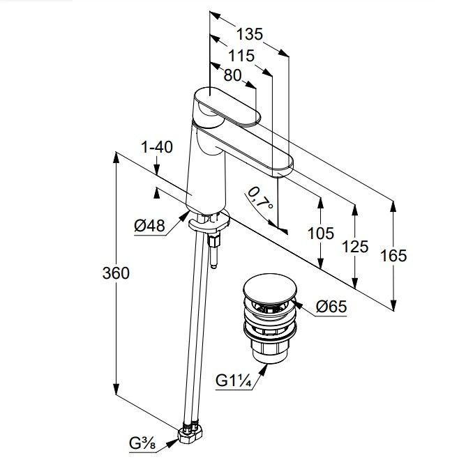 - В комплекте со смесителем поставляется донный клапан (входит в стоимость)