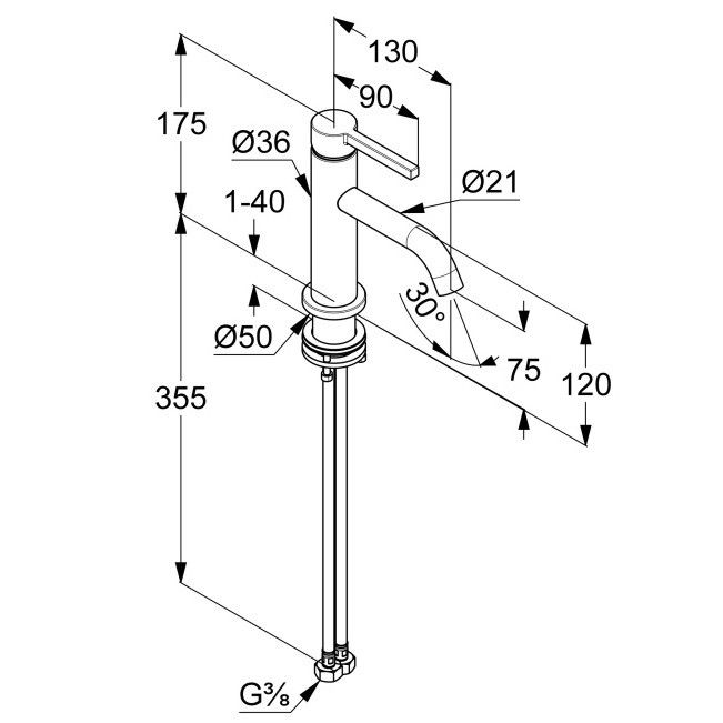 KLUDI NOVA FONTE Pura, однорычажный смеситель на умывальник 75, арт. 200280515