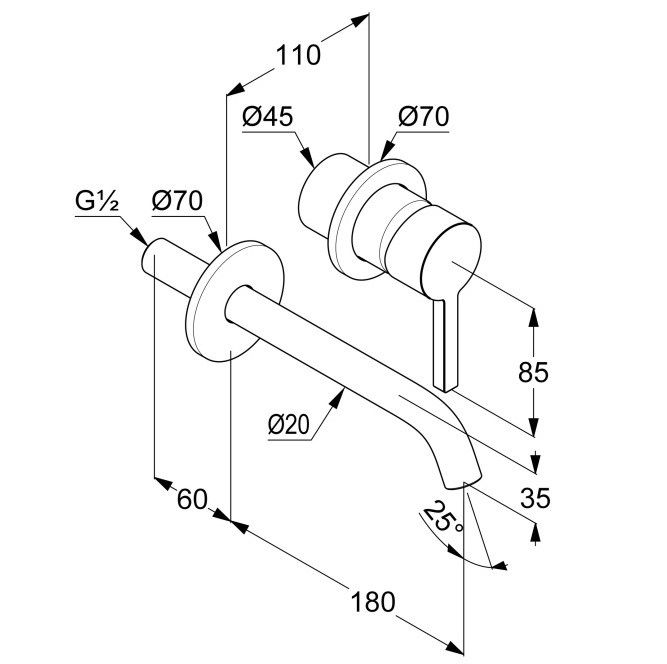 Смеситель для раковины Kludi Nova Fonte Pura 202440515 встраиваемый, без донного клапана, хром