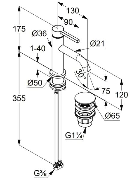 - В комплекте со смесителем поставляется донный клапан (входит в стоимость)