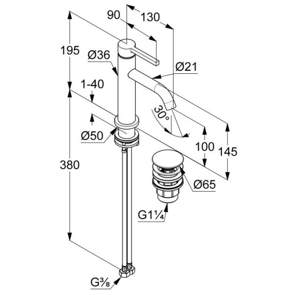 - Высота смесителя:19.5