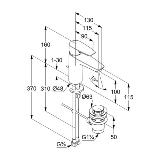Смеситель для раковины Kludi Pure&Solid 342930575WR4 хром