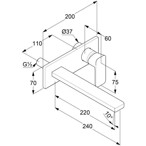 длина излива 240 мм