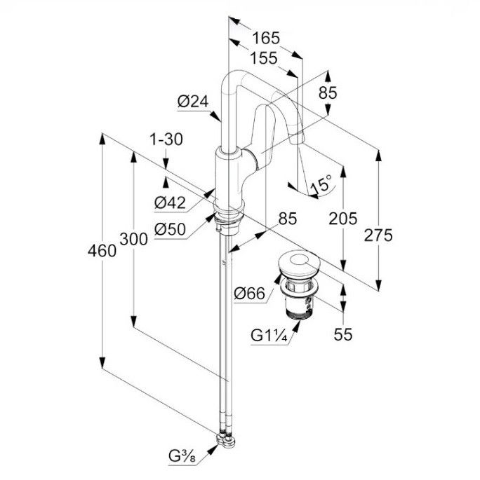 • В комплекте со смесителем поставляется донный клапан (входит в стоимость)
