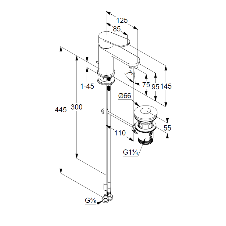 - В комплекте со смесителем поставляется донный клапан (входит в стоимость)