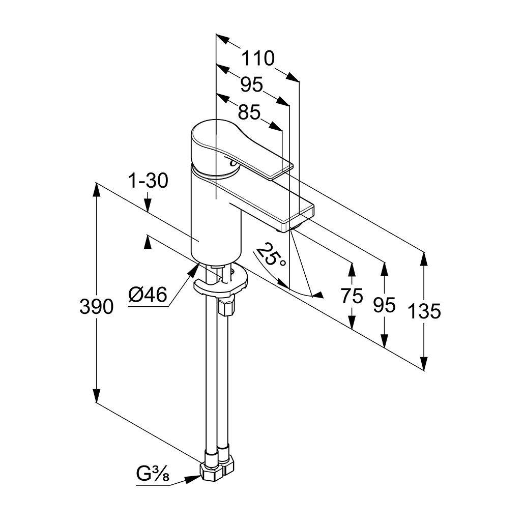 однорычажный смеситель на умывальник 75 DN 15