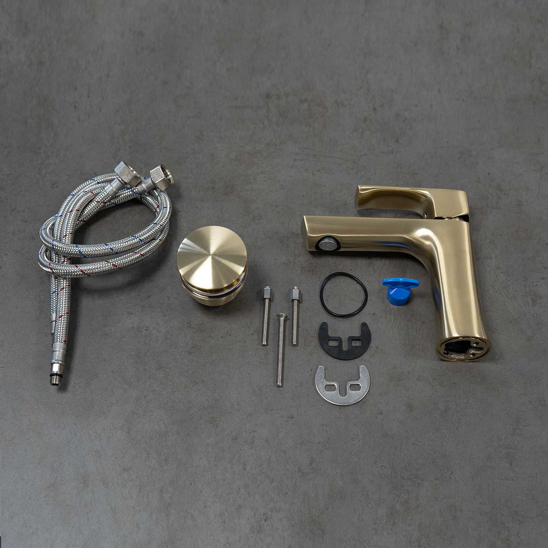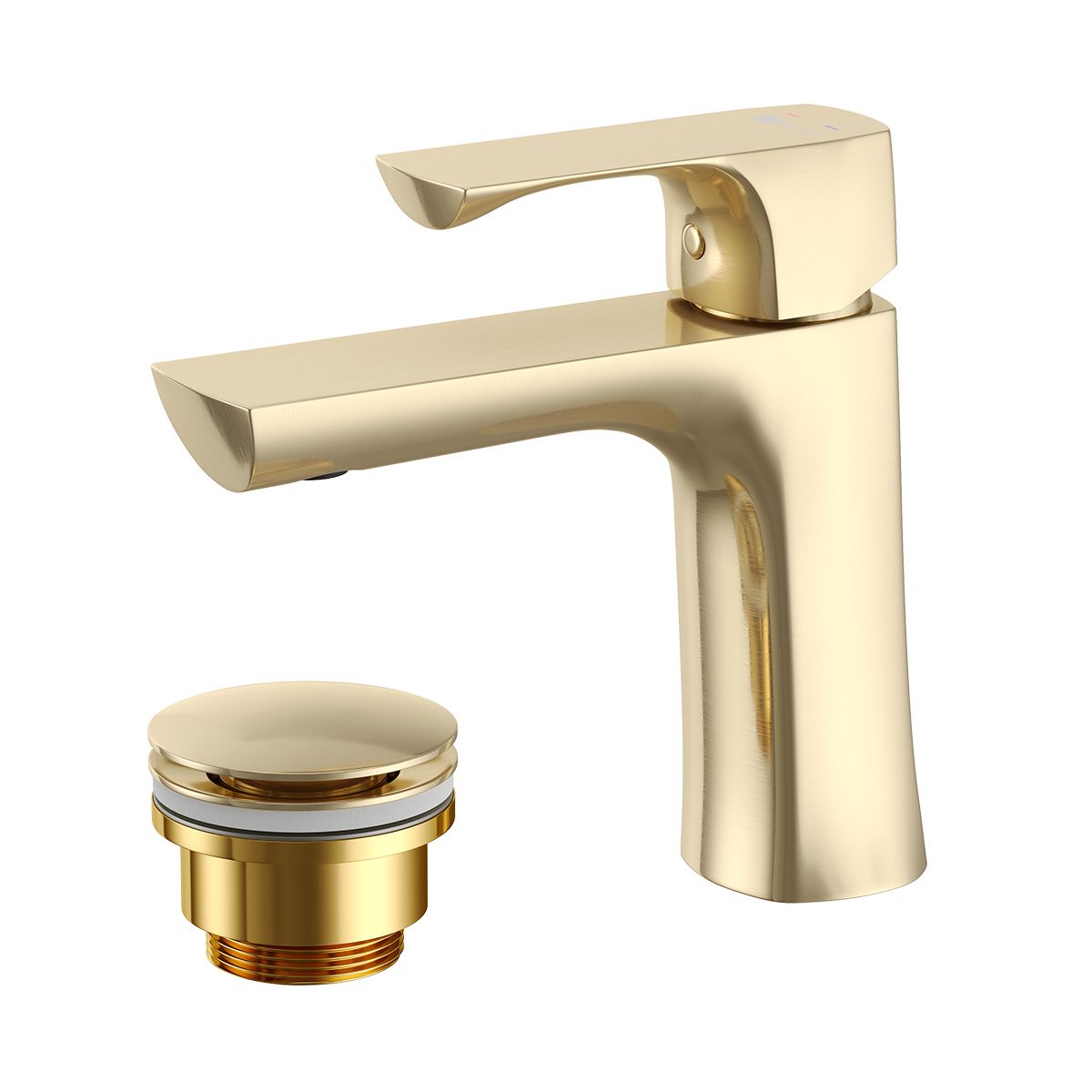 Смеситель для раковины Lemark Ursus LM7206BG с донным клапаном брашированное золото