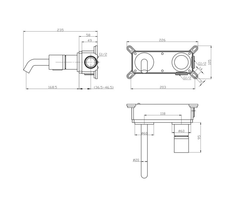 Смеситель для раковины настенный Bronze de Luxe FOCUS 24686BG, черный