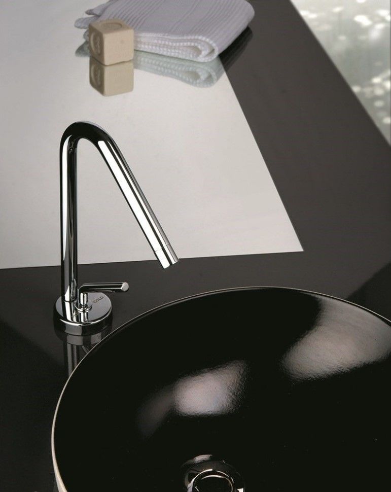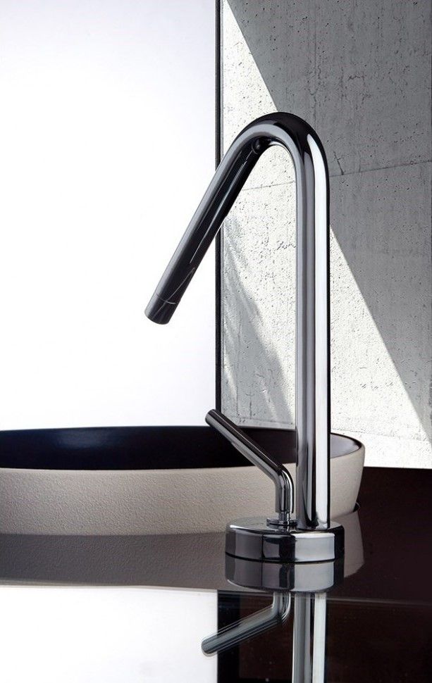 - Нет необходимости низко склоняться над раковиной, чтобы умыться, так как конструкция высокого смесителя предполагает большое функциональное пространство между изливом и раковиной.