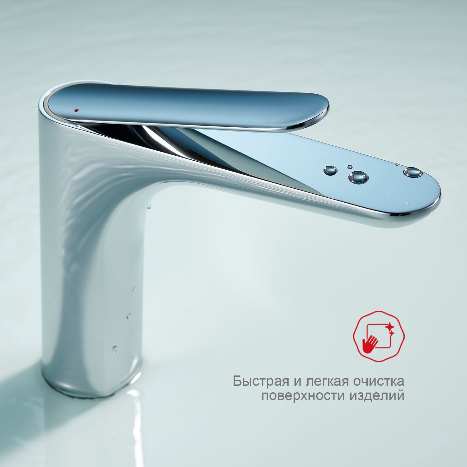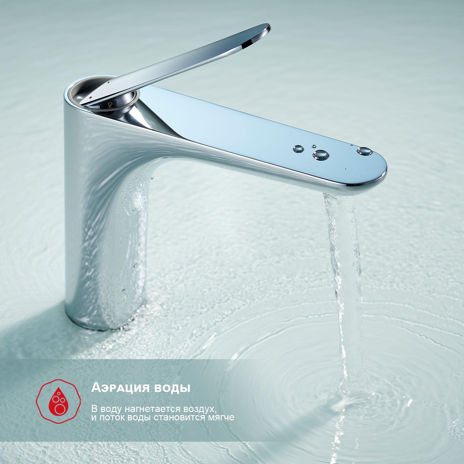 Смеситель для раковины из латуни в хроме, Данный смеситель для умывальника имеет надежный стационарный излив, не меняющий своего положении. Смеситель прекрасно смешивает потоки воды, а помимо этого обладает невысоким показателем шумов. Быстрый монтаж. Крепление на усиленной гайке. Подводка длиной 55 см имеет латунные гайки. Имеет награду Red Dot Award.Гарантия 7 лет.