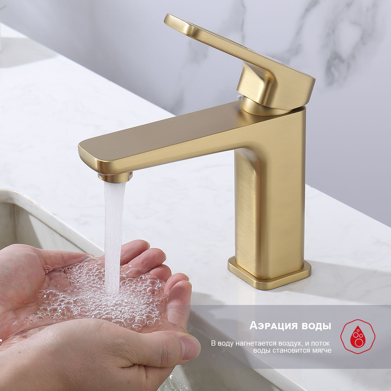 Смеситель для раковины Raglo R51.10.03 золотой сатин