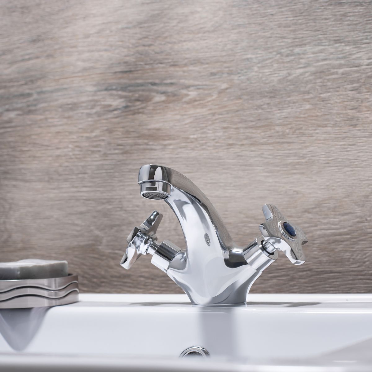 Миниатюрный двуручковый смеситель для умывальника порадует сочетанием надежного качества и стильных форм.