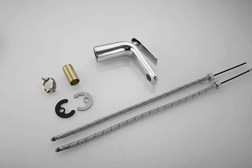 Смеситель для раковины Rose R39 R3901, хром.Материал: латунь.Управление: рычажное.Стилистика дизайна: Современный стиль.Подводка: гибкая, 1/2" .