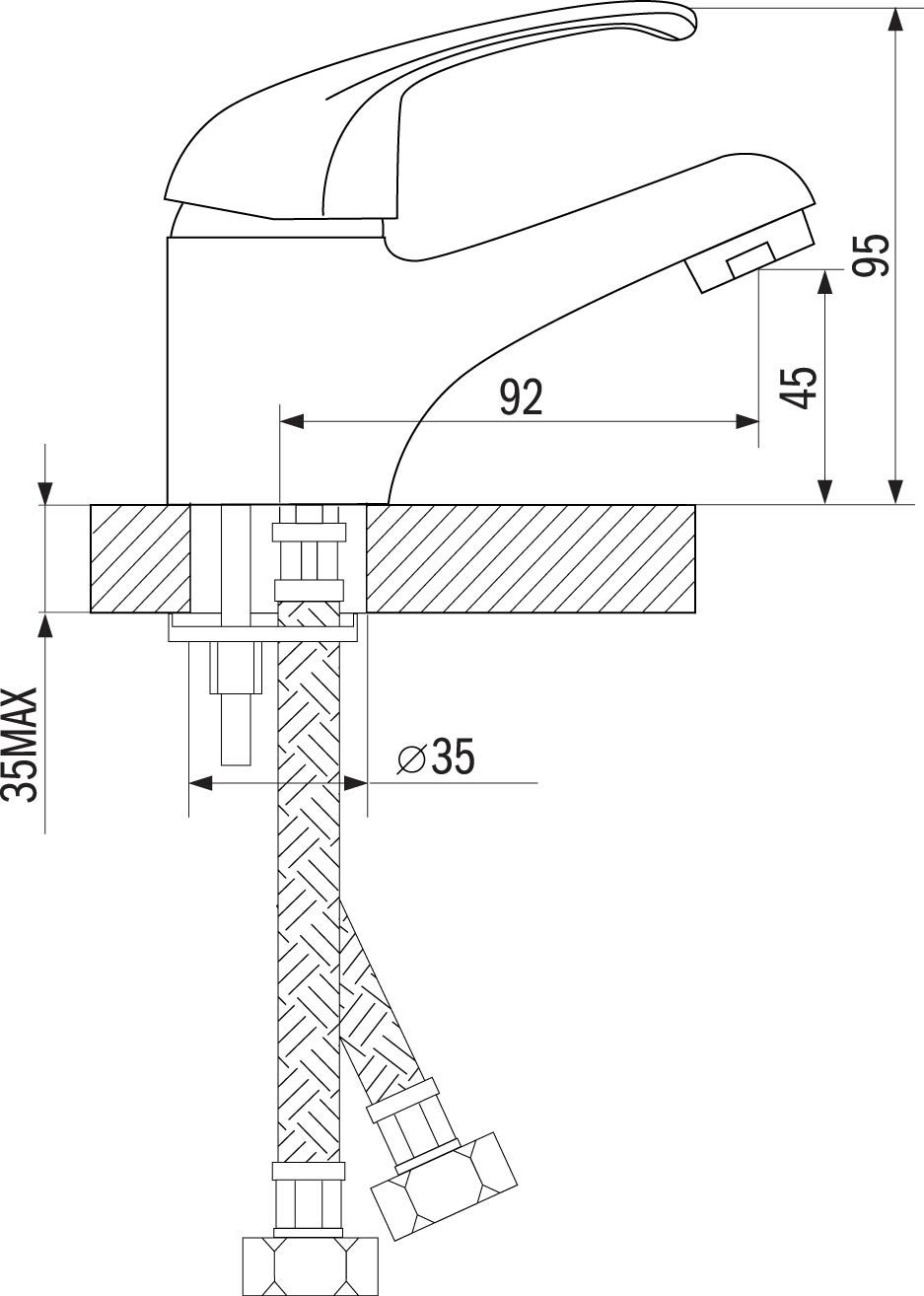 Смеситель Rossinka A35-11 для раковины.Пластиковый аэратор с функцией легкой очистки, керамический картридж 35 мм, гибкая подводка 30 см – 2 шт.