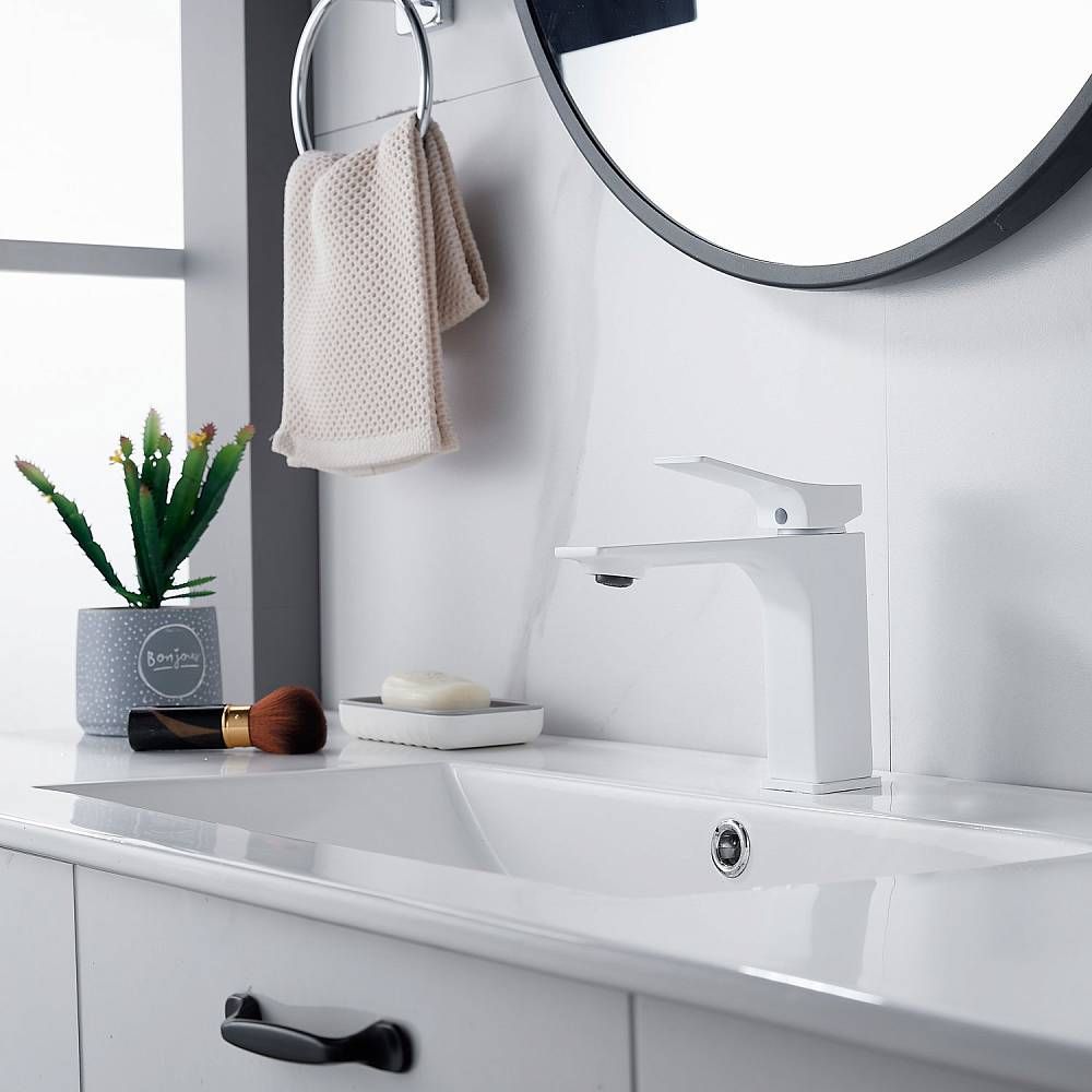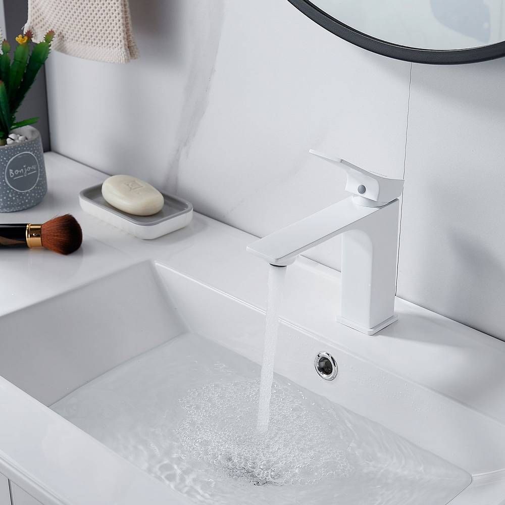 Смеситель для раковины Shevanik S6101C в белом цвете — это стильное и функциональное решение для вашей ванной комнаты. Изготовленный из высококачественной латуни, он обеспечивает прочность и долговечность.
