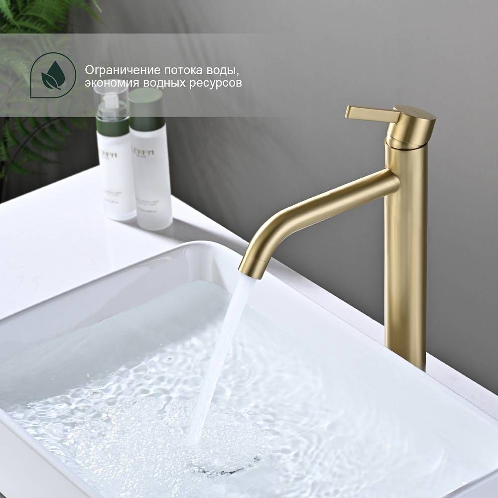 Смеситель выполнен в цвете «золотой сатин», который придаст вашей ванной комнате изысканность и элегантность.