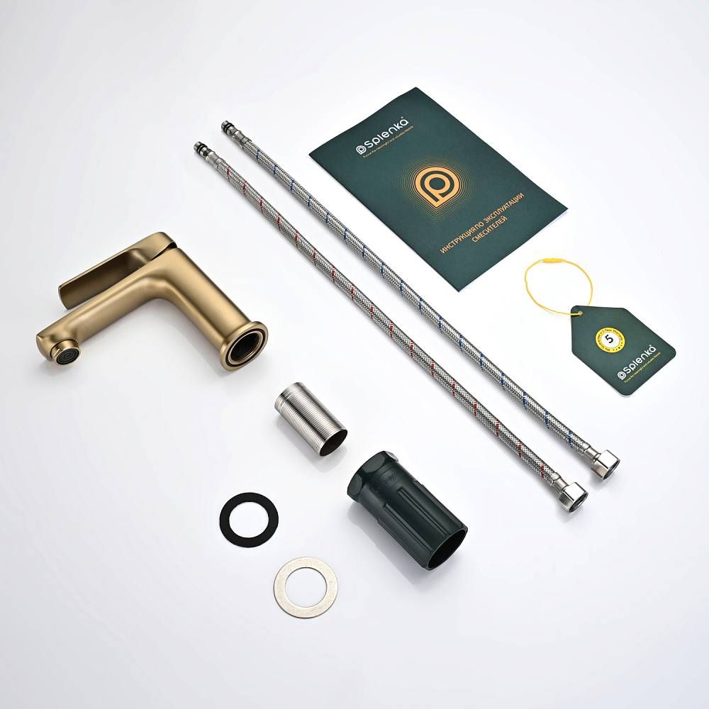 Смеситель для раковины Splenka S30.10.03, сатин золотой. Смеситель для раковины Splenka имеет повышенную прочность корпуса. Соответствует требованиям международного стандарта. Одна рукоять для регулировки воды. Аэратор гарантирует одинаковый поток воды, сеточка рассеивает напор, вода смягчается. Смеситель устанавливается на гайке, нижняя часть смесителя вставляется в отверстие для монтажа и затягивается гайкой для фиксации. Данный смеситель для умывальника имеет надежный стационарный излив, не меняющий своего положении. Смеситель прекрасно смешивает потоки воды, а помимо этого обладает невысоки показателем шумов. Быстрый монтаж. Гарантия производителя 5 лет.