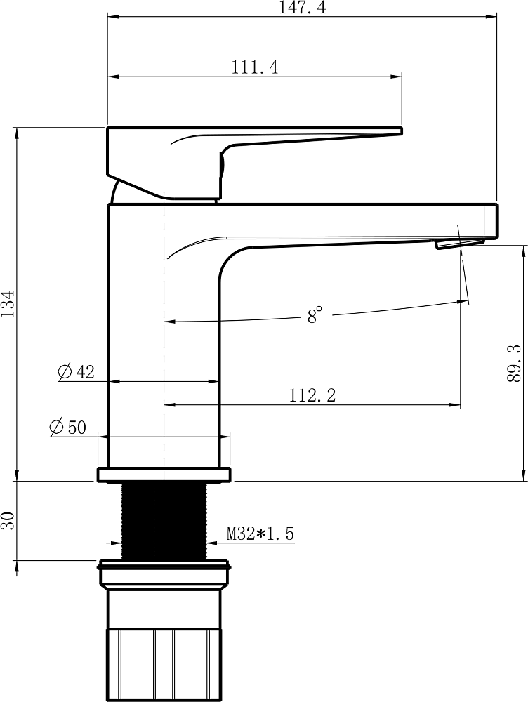 - Высота излива: 8.9 см