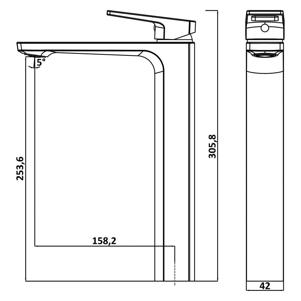 Высокий смеситель для раковины Керамический картридж Sedal.Аэратор Neoperl.Гибкая подводка SoftPEX.Гигиенически стабильная латунь с высоким содержанием меди.