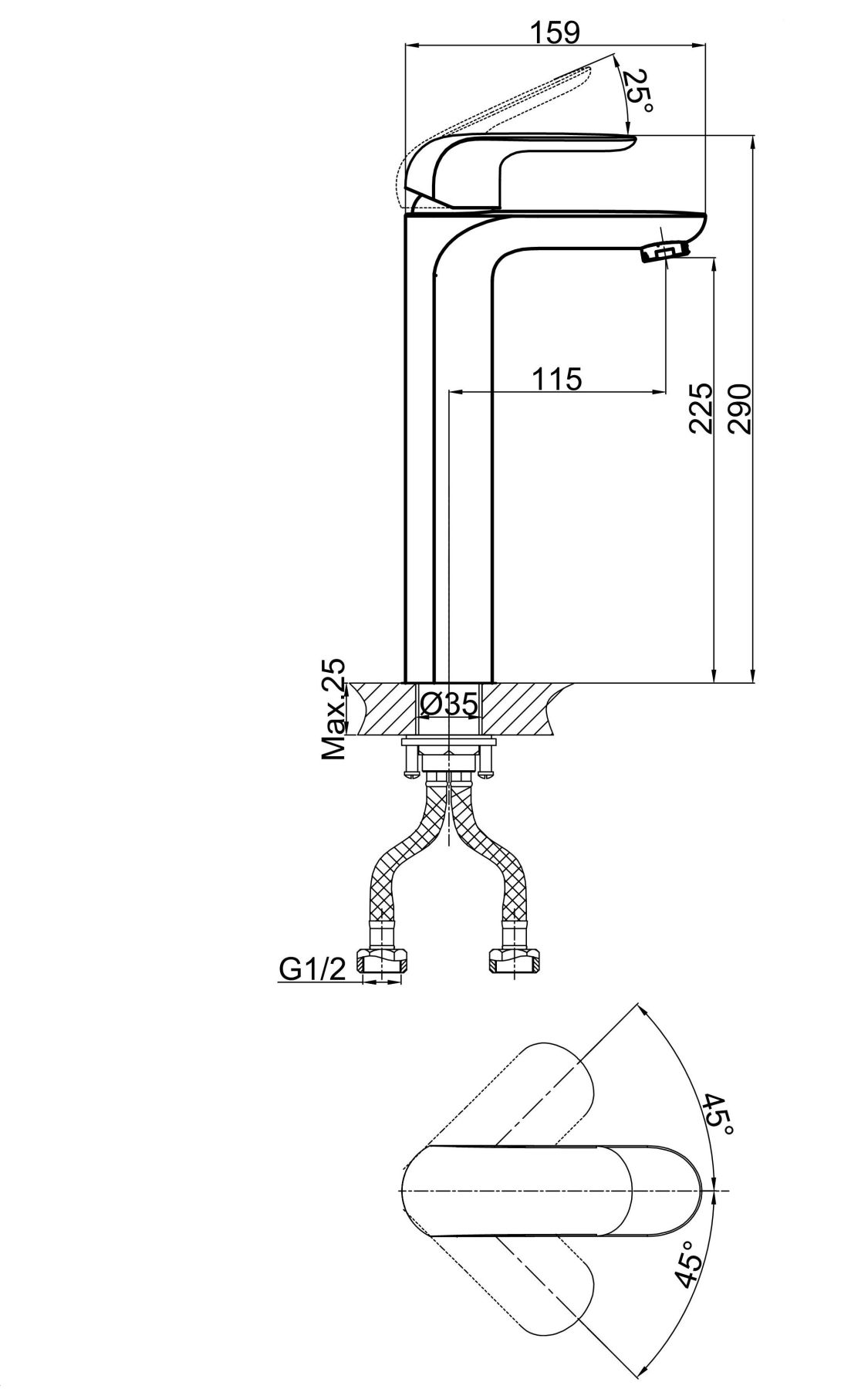Высота смесителя:29